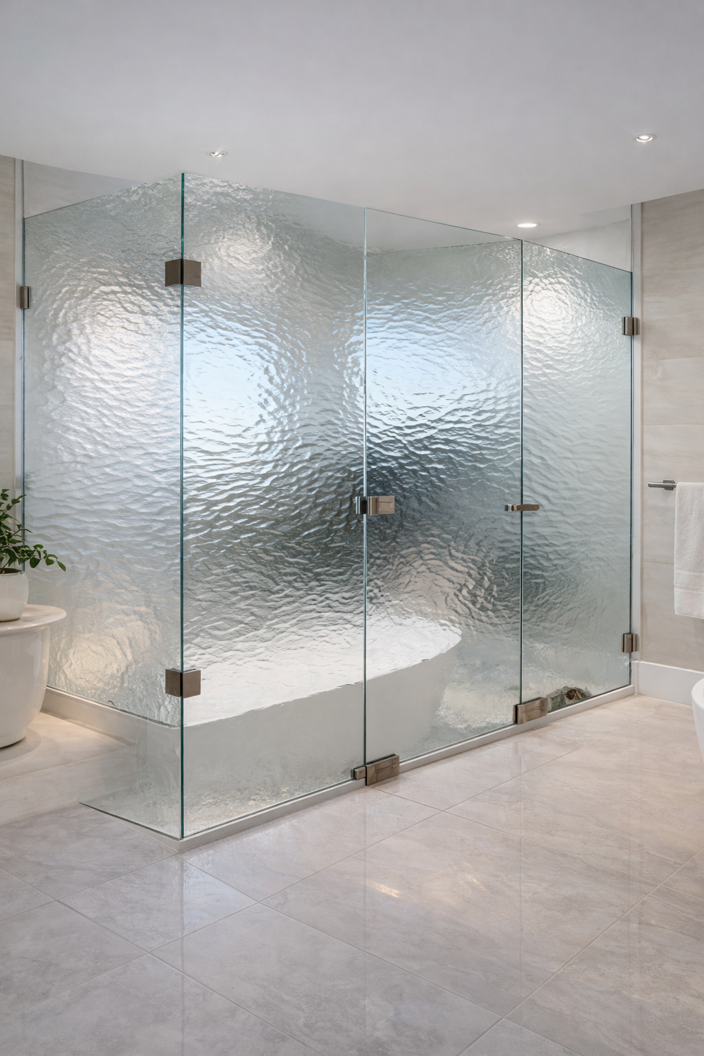 Minimal hardware, hidden fasteners, and perfectly aligned glass edges so your tile, stone, and fixtures take center stage.